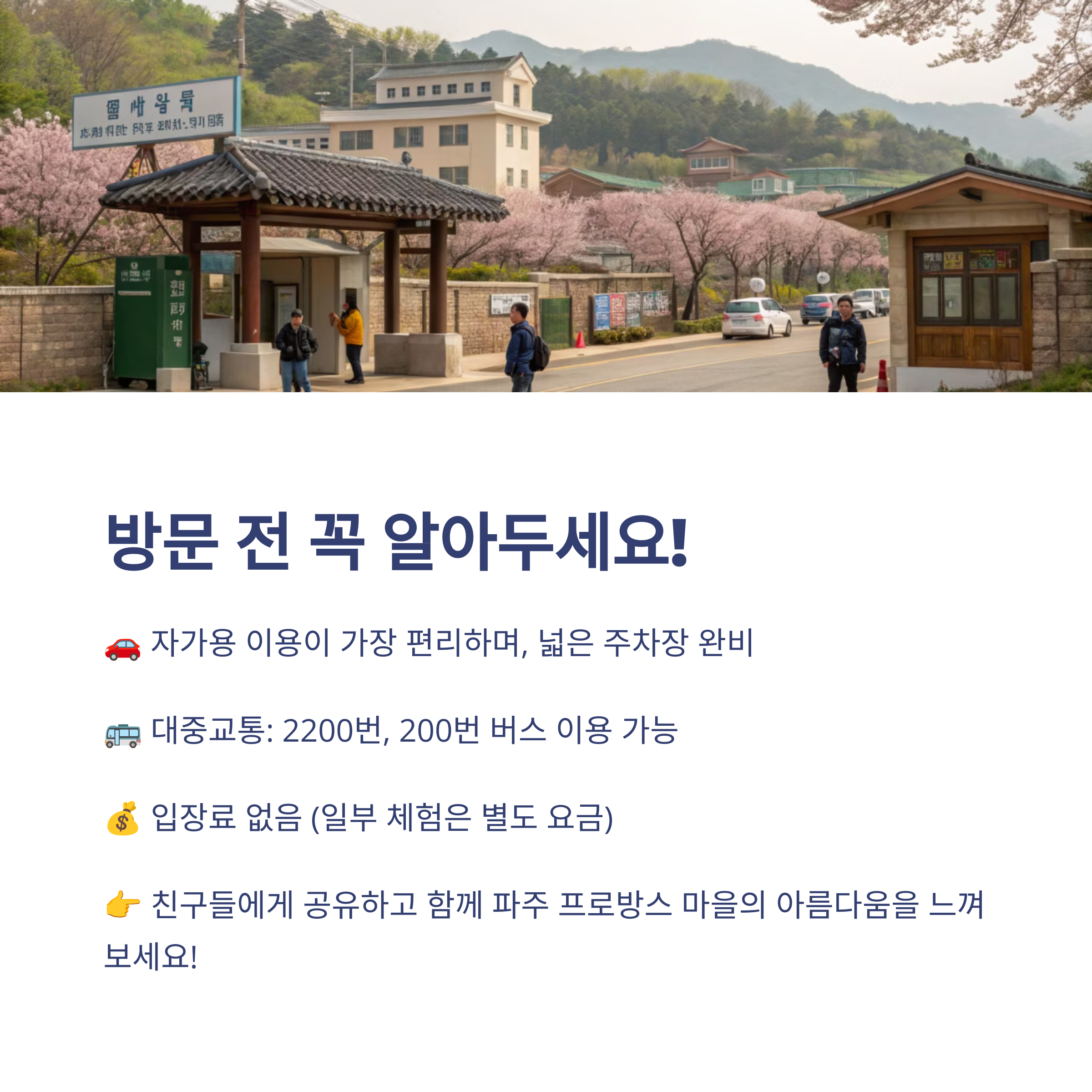 자, 여기까지 파주 프로방스 마을 벚꽃 여행 가이드를 소개해 드렸어요. 프랑스의 감성과 한국의 봄이 만나 만들어내는 아름다운 풍경은 정말 한 번쯤 꼭 경험해보시길 추천드려요. 저도 이번 방문에서 너무 좋은 추억을 만들었답니다.