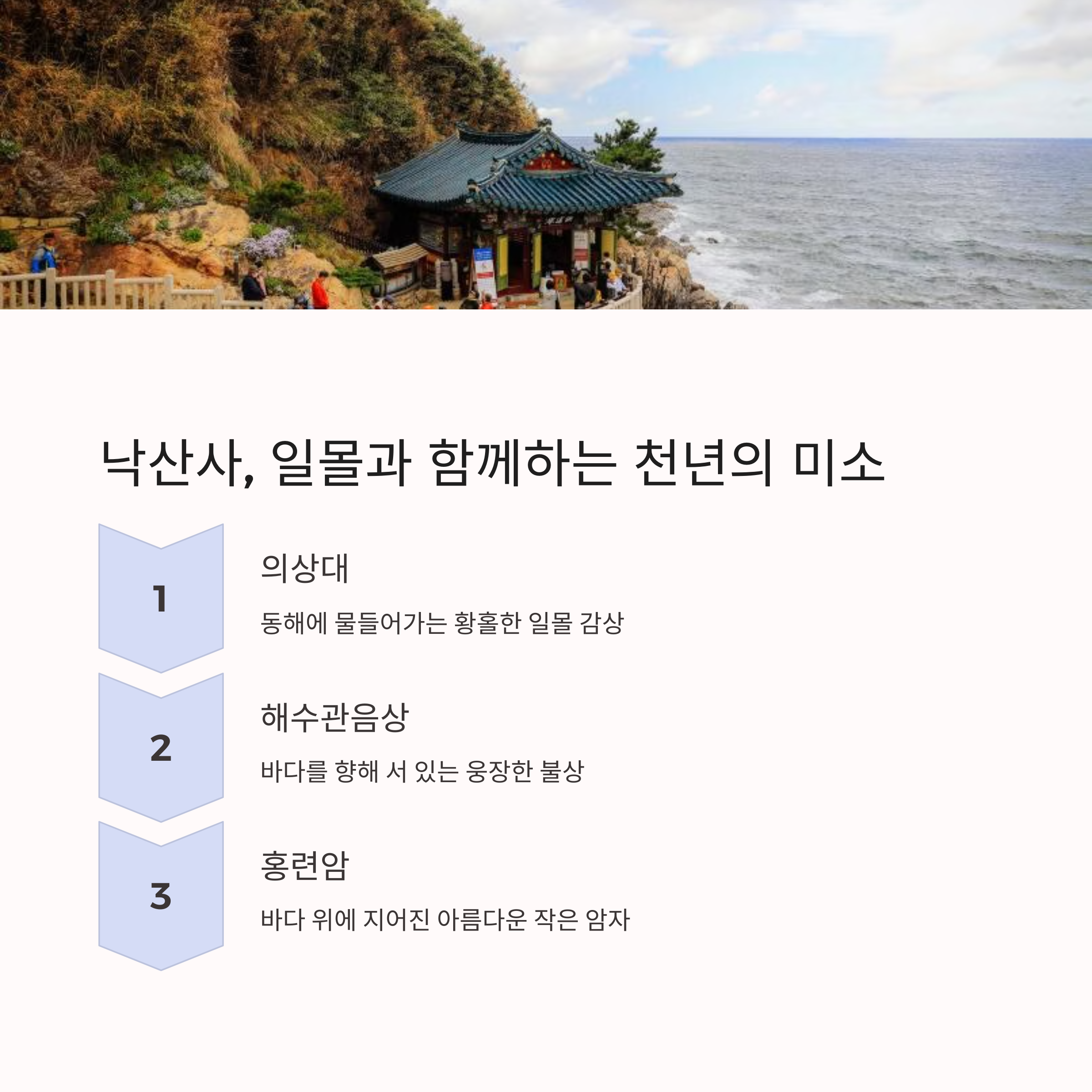 - 낙산사 방문 시 겉옷 챙기기 (해 질 무렵 바람이 강함)