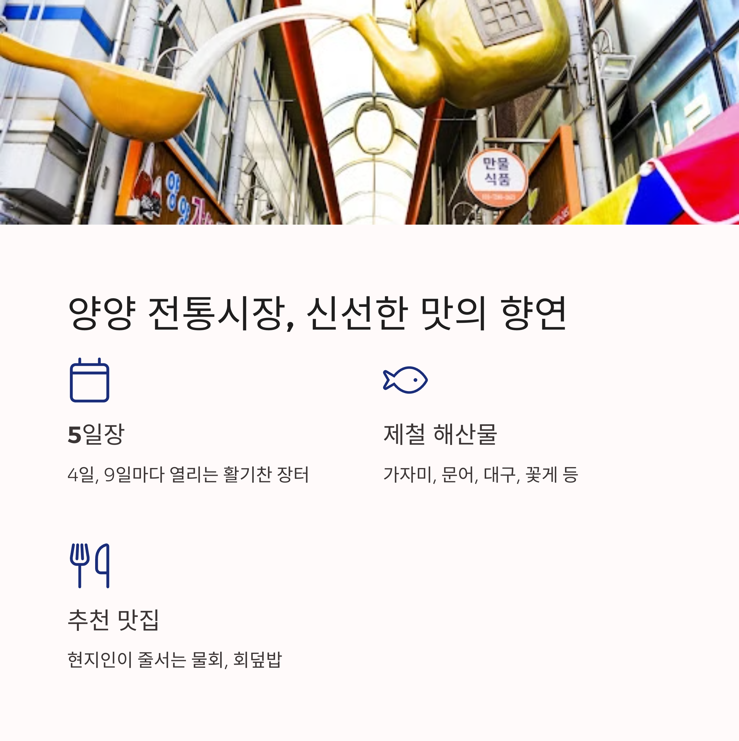 - 양양 전통시장에서는 현금 결제가 유리하니 미리 준비하기